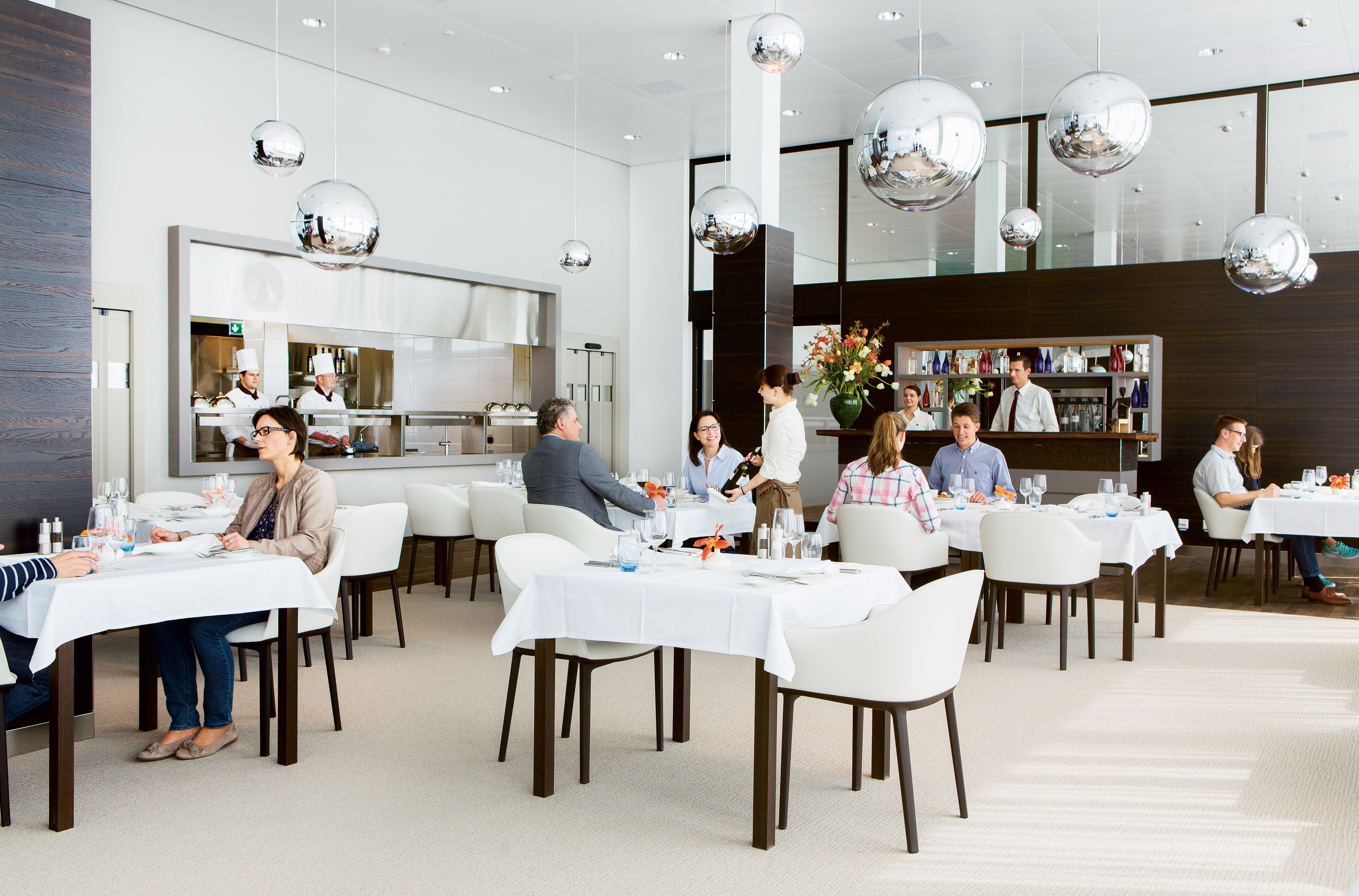 Die lichtdurchfluteten Räumlichkeiten des Restaurants Mercato.