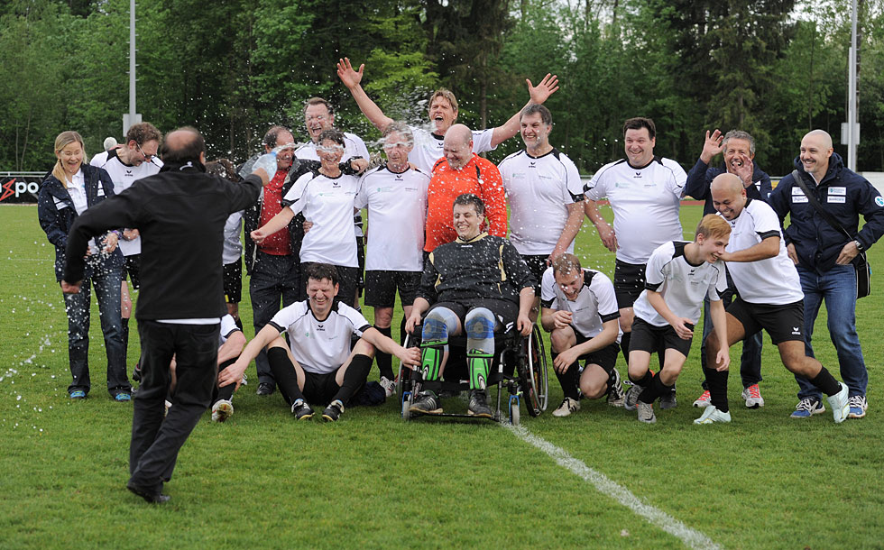 Um 17.45 Uhr spielten die RehaBellikon-Kickers mit Teamcoach Raimondo Ponte (Team besteht aus ehemaligen Patienten und Mitarbeitenden der Rehaklinik Bellikon sowie aus Prominenten) gegen das PluSport-Team 2000 (Team besteht aus VIP-Botschaftern und paralympischen Athleten von PluSport) und gewann 4:2.