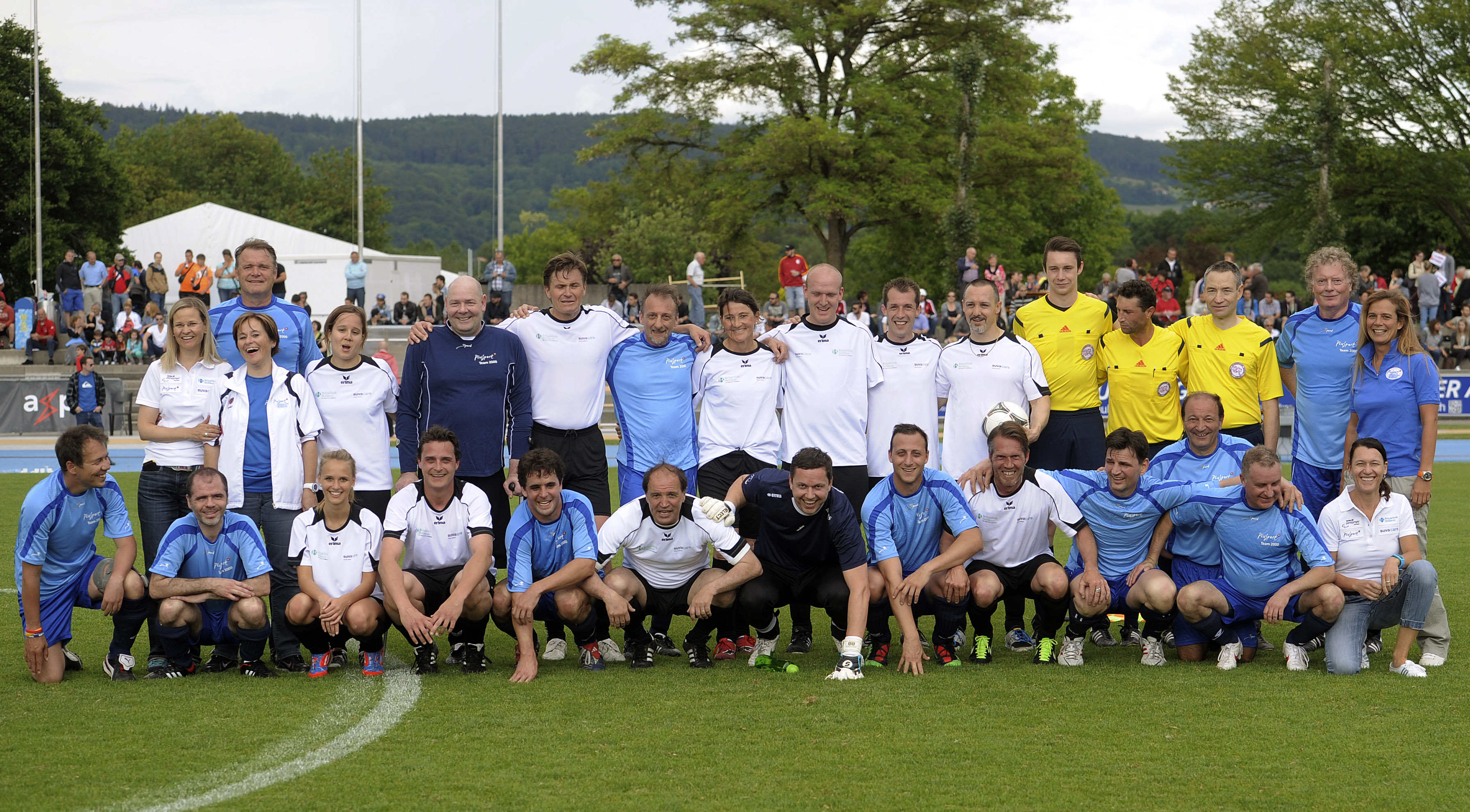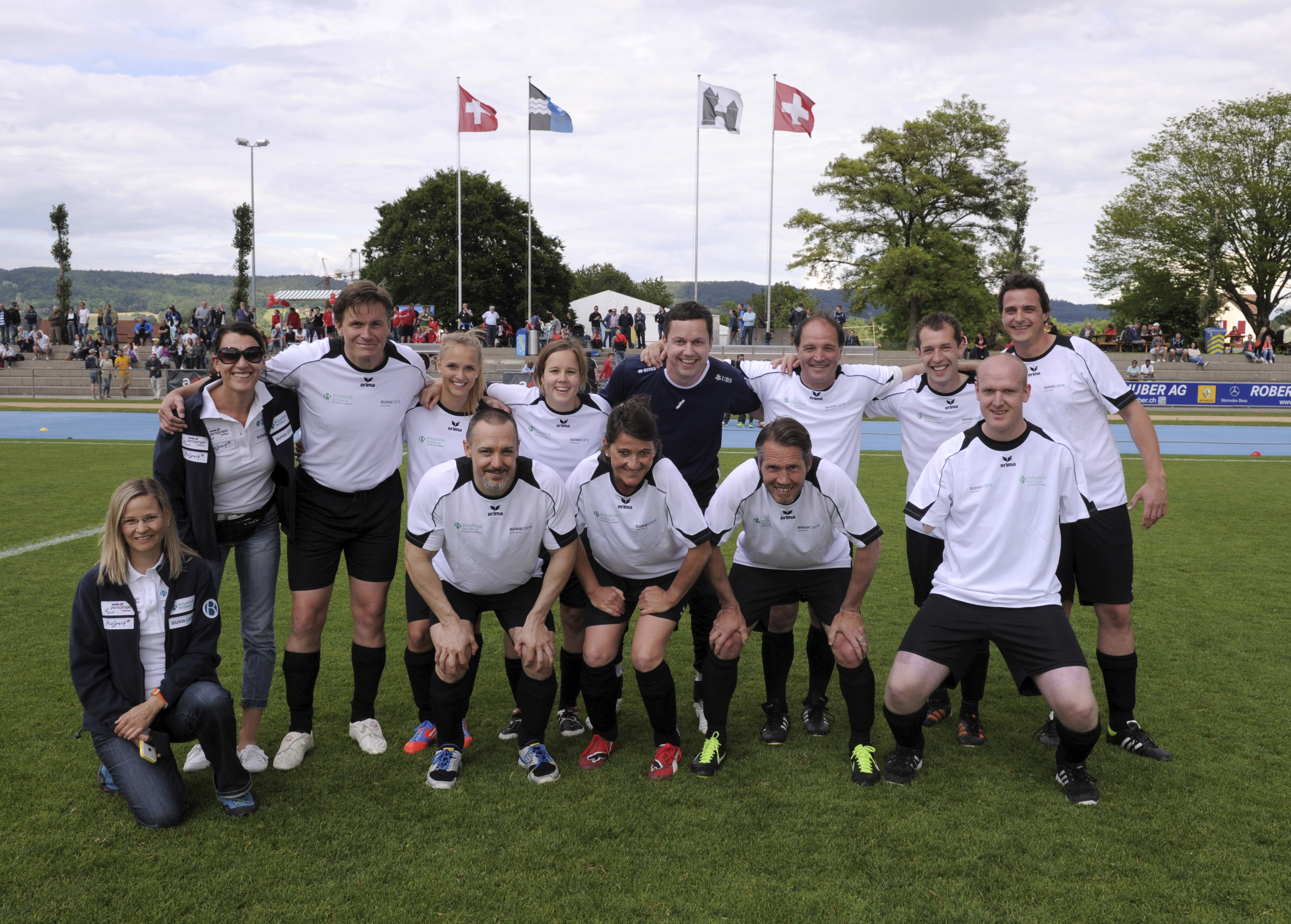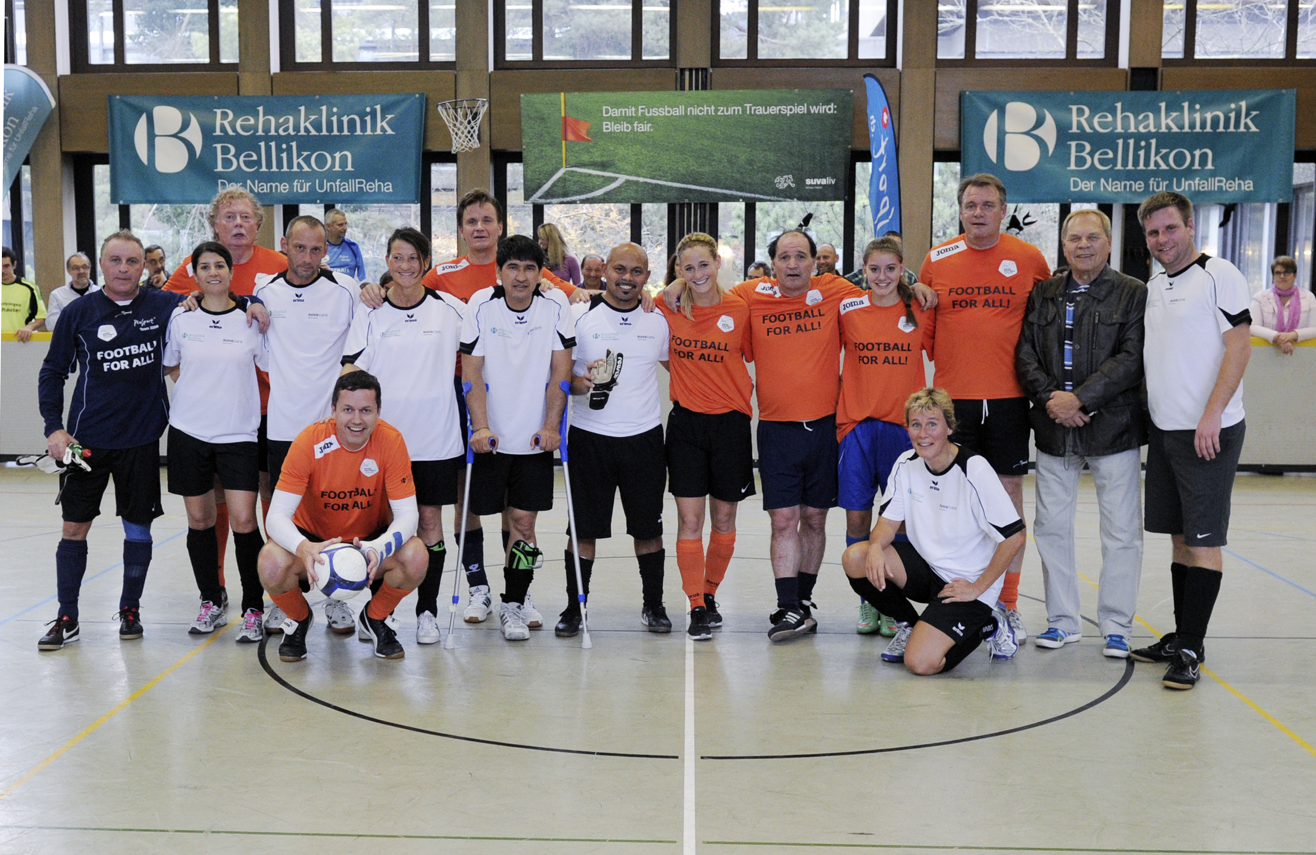 29. Mai 2014 - Bereits zum zweiten Mal initiierte Luigi Ponte (AFV Aargauer Fussballverband) den Football for all-Match am Aargauer Cupfinal. Vor dem grossen Cup-Finale spielte in der Sportanlage Au in Brugg das Team Rehaklinik Bellikon (bestehend aus Patienten und Mitarbeitenden der Reha Bellikon sowie Prominente aus der Sportszene) gegen das PluSport-Team 2000 (Team bestehend aus VIP-Botschaftern und paralympischen Athleten von PluSport). Das Team Reha Bellikon konnte den letztjährigen Titel verteidigen und gewann mit Teamcoach Raimondo Ponte das Spiel mit 3:1. Für alle Spieler stand aber die Freude und der Spass am Fussball im Vordergrund.