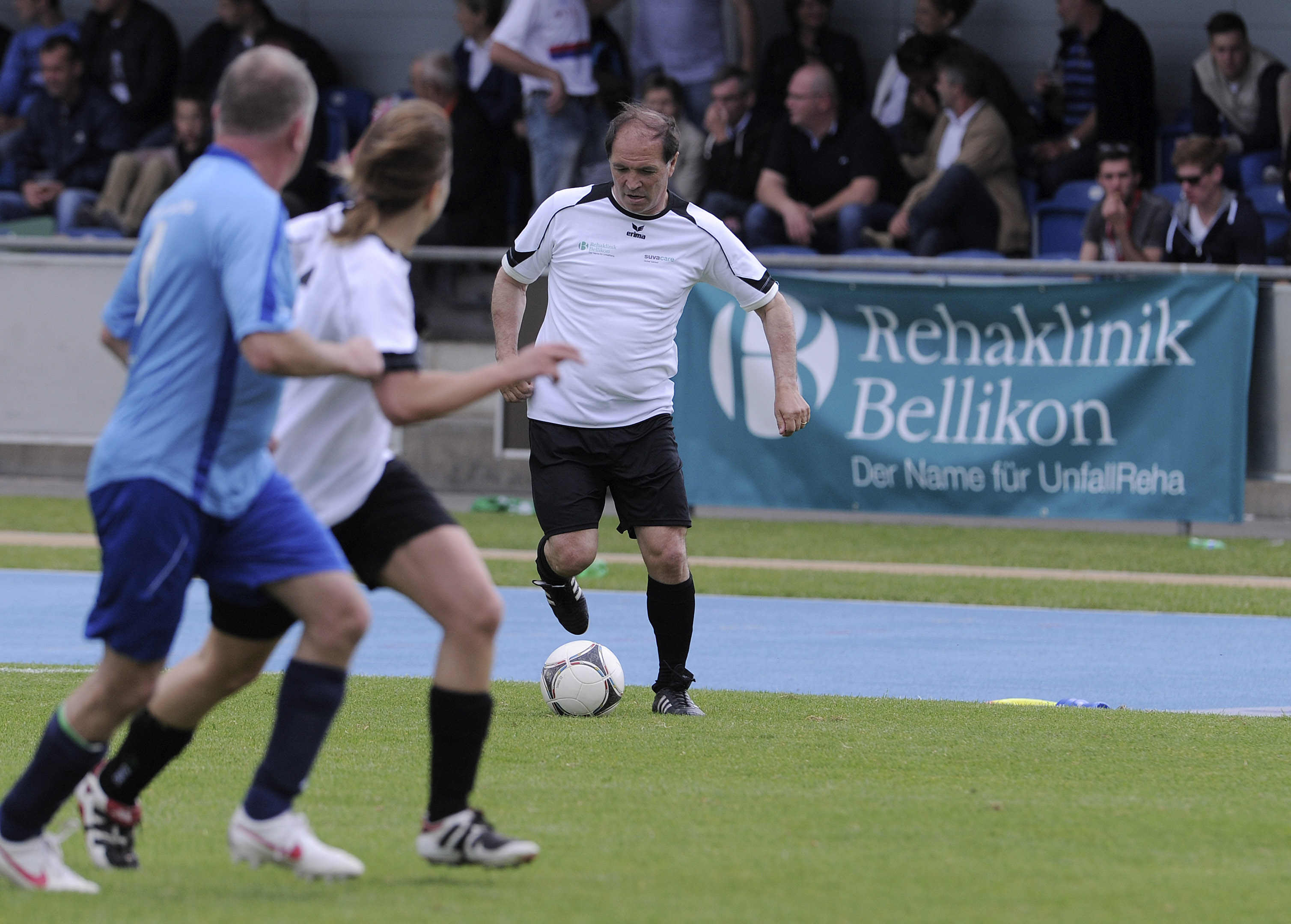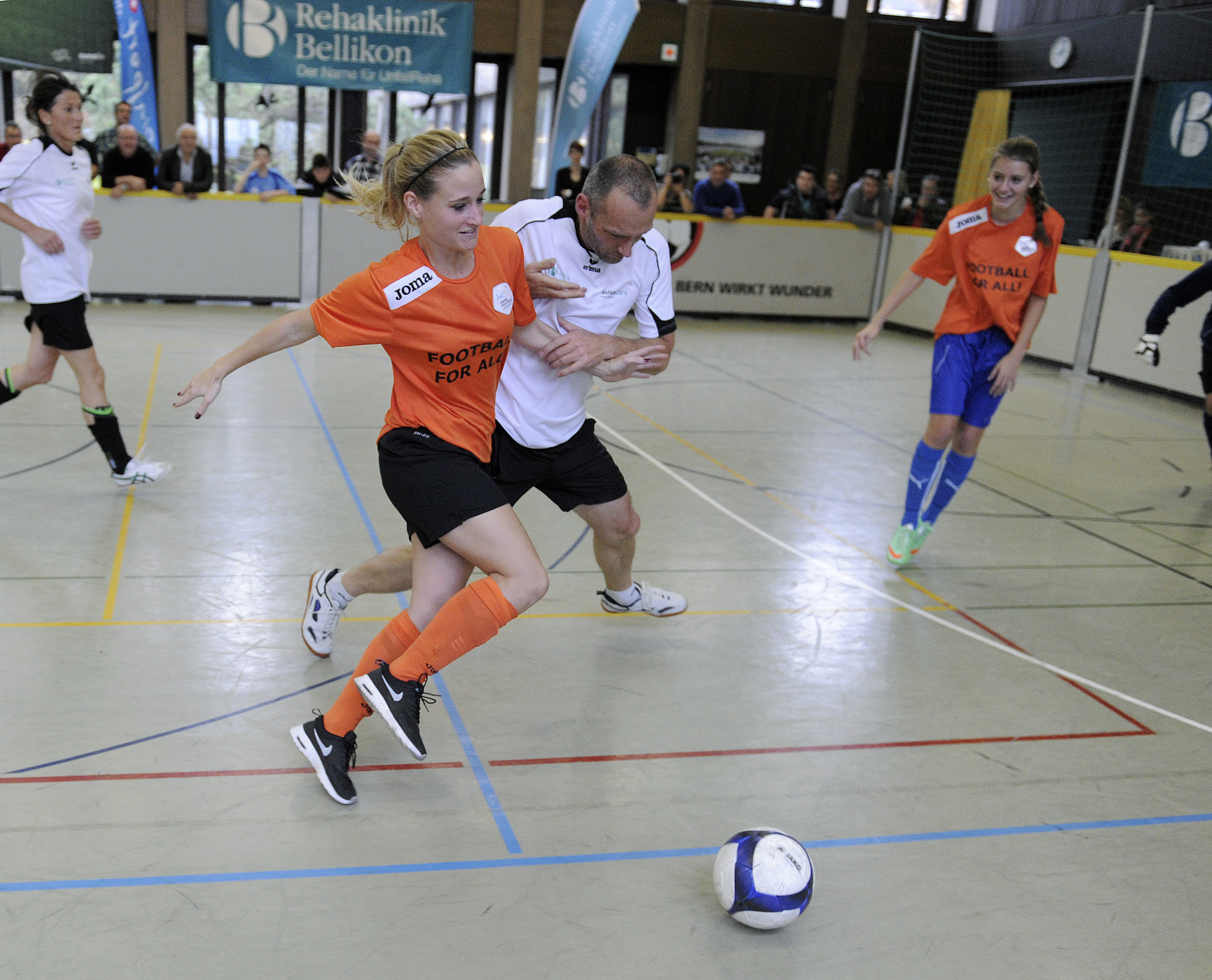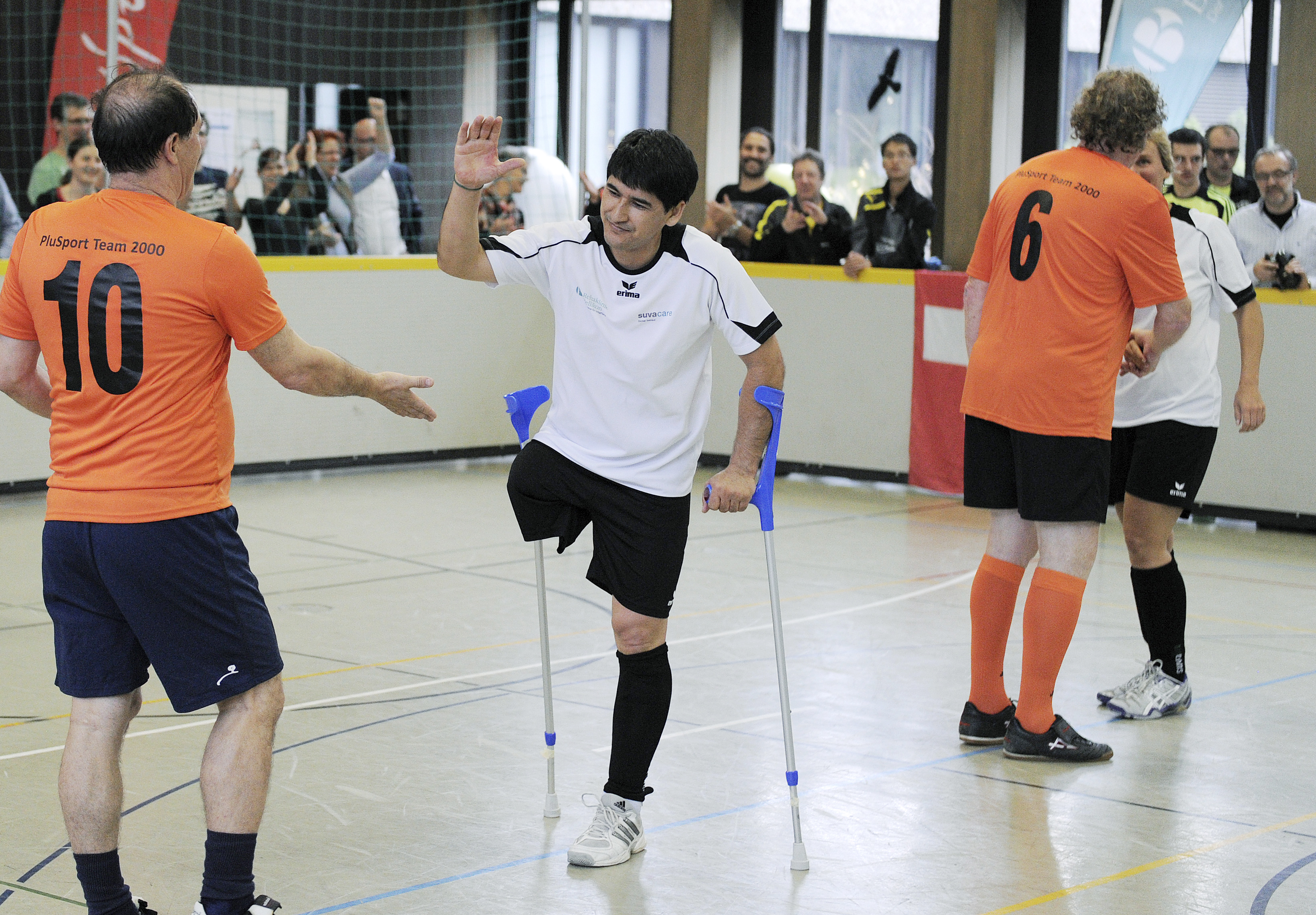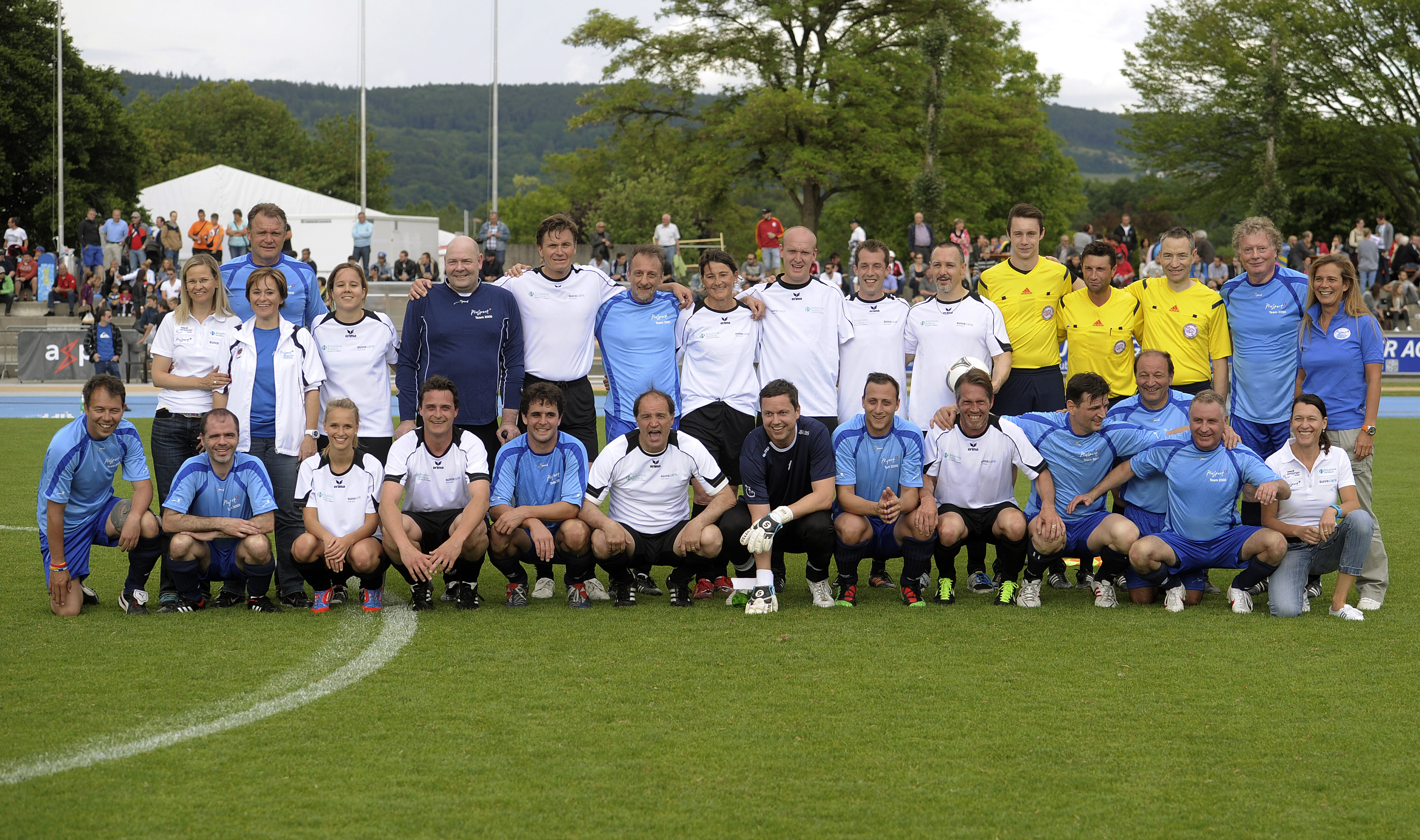 29. Mai 2014 - Bereits zum zweiten Mal initiierte Luigi Ponte (AFV Aargauer Fussballverband) den Football for all-Match am Aargauer Cupfinal. Vor dem grossen Cup-Finale spielte in der Sportanlage Au in Brugg das Team Rehaklinik Bellikon (bestehend aus Patienten und Mitarbeitenden der Reha Bellikon sowie Prominente aus der Sportszene) gegen das PluSport-Team 2000 (Team bestehend aus VIP-Botschaftern und paralympischen Athleten von PluSport). Das Team Reha Bellikon konnte den letztjährigen Titel verteidigen und gewann mit Teamcoach Raimondo Ponte das Spiel mit 3:1. Für alle Spieler stand aber die Freude und der Spass am Fussball im Vordergrund.